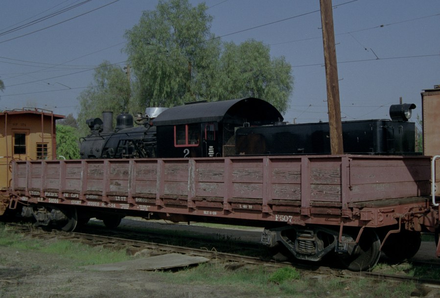 THE UNDERSIDE OF A UNION PACIFIC RAILROAD FLAT CAR