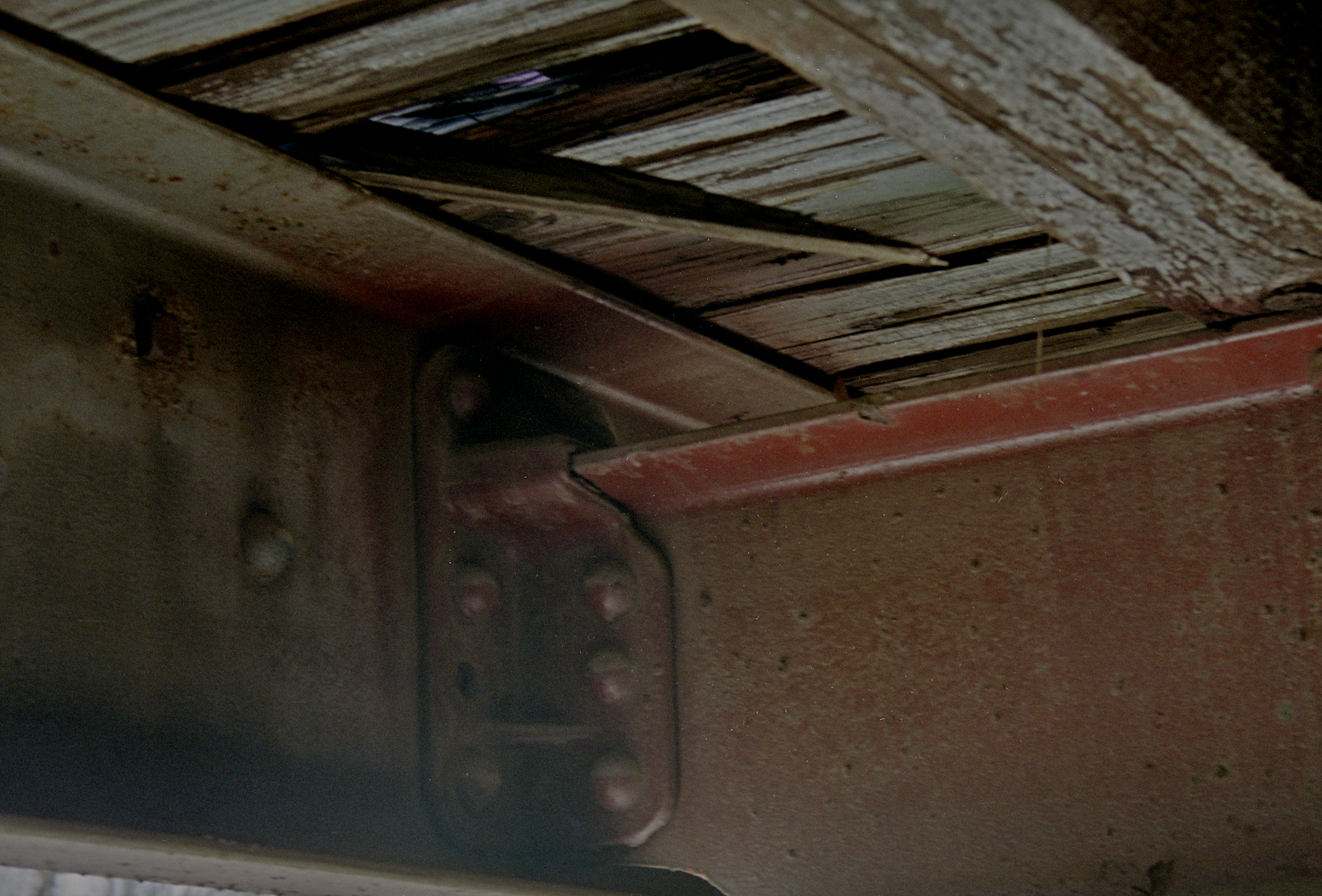 THE UNDERSIDE OF A UNION PACIFIC RAILROAD FLAT CAR